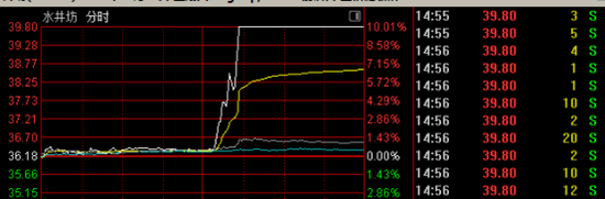 酒类股盘中发力走高,水井坊午后直线拉升涨停。