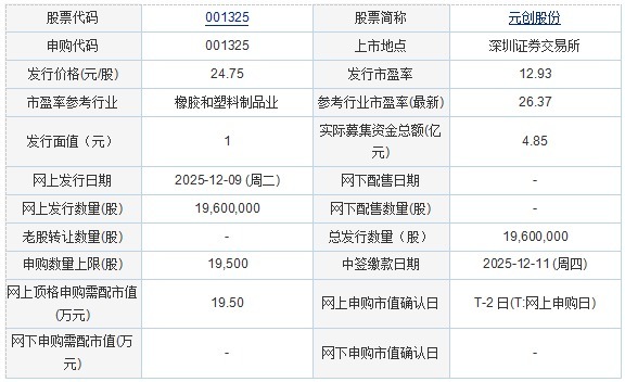 元创股份2025年12月5日披露的首次公开发行股票并在主板上市招股说明书 显示,公司拟募资48,513.17万元,用于生产基地建设项目、技术中心建设项目和补充流动资金项目。